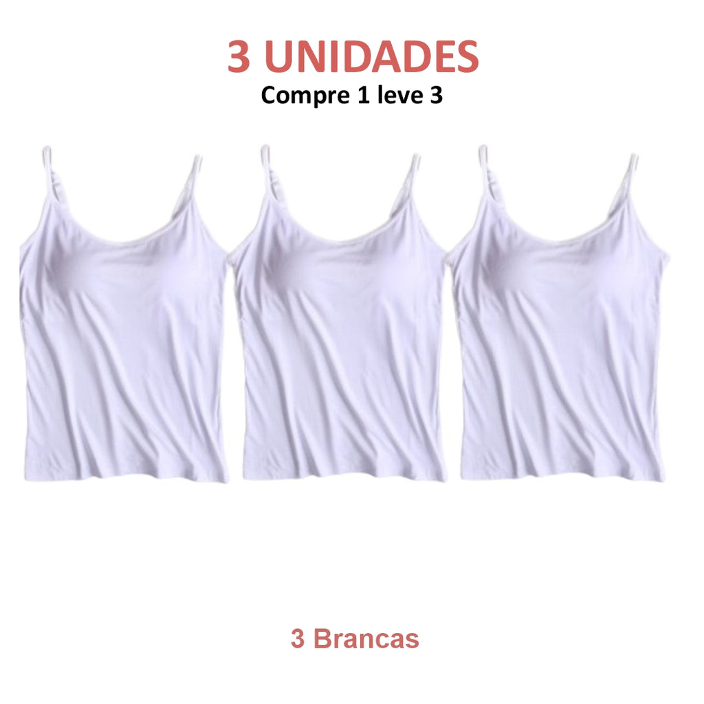 BLUSA REGATA COM SUTIÃ EMBUTIDO (COMPRE 1 LEVE 3)